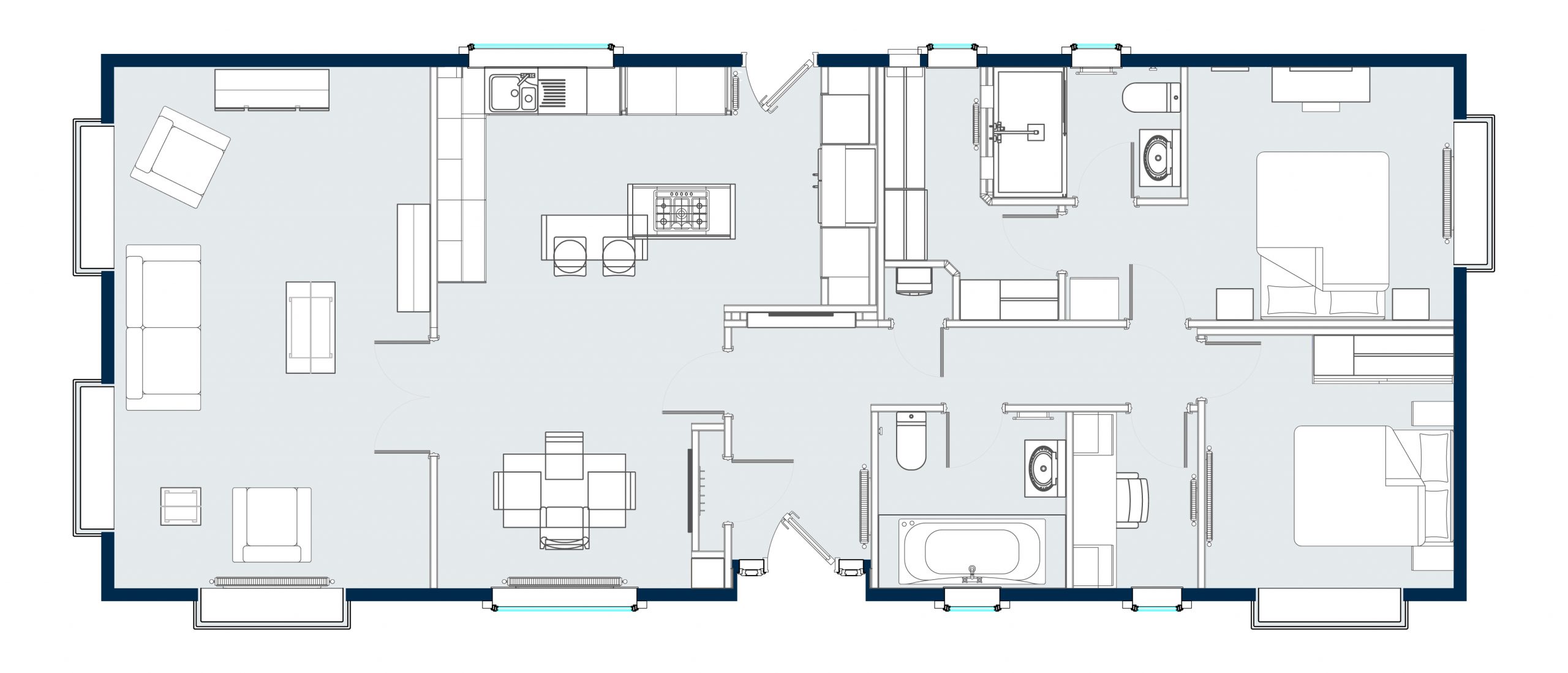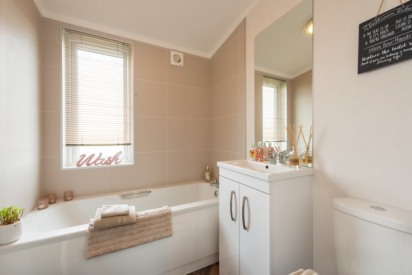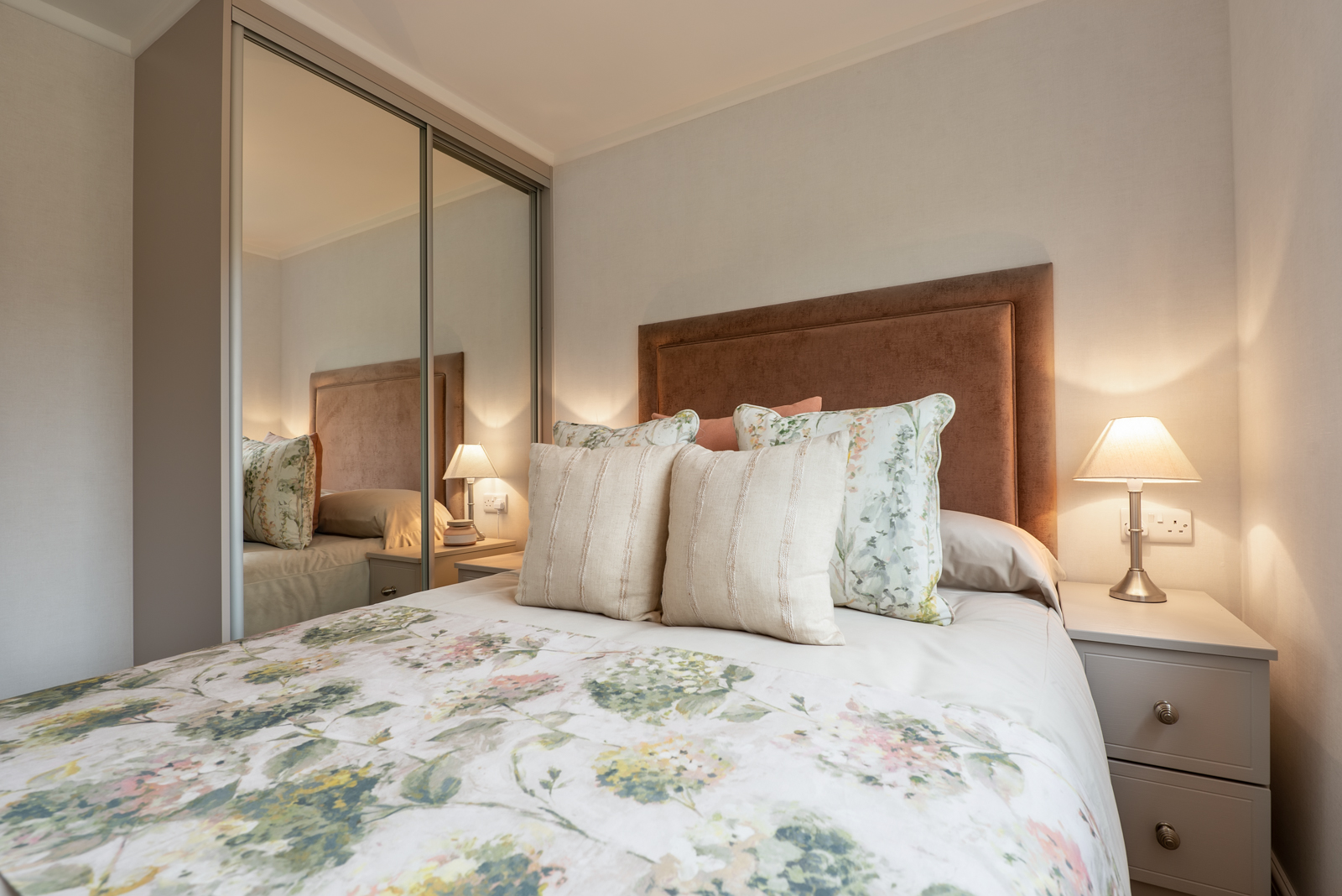 The interior of this residential park home is designed to impress too, from the plush velvet chaise sofa to the open plan kitchen and dining room. Both double bedrooms benefit from sliding mirror wardrobes and the master suite’s beautiful decor, enhanced with an en-suite bathroom, would feel at home in any 5-star hotel.