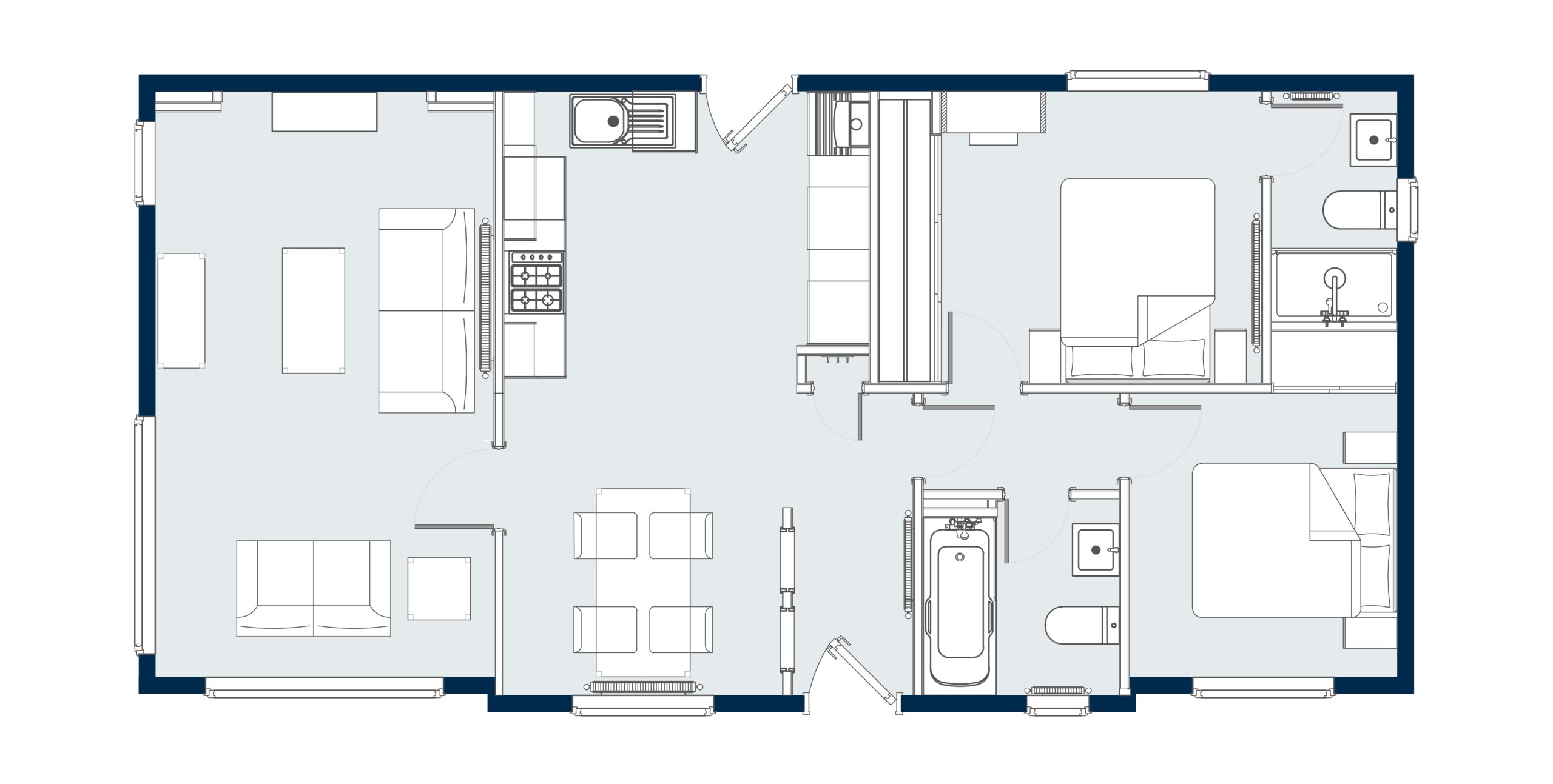Urban cool. From the moment you enter the smart glazed hallway and glimpse the contemporary gloss dining suite you know the Residence residential park home is different. Our in-house design teams have beautifully combined the finest ingredients to create a chic, contemporary park home befitting the Prestige heritage.